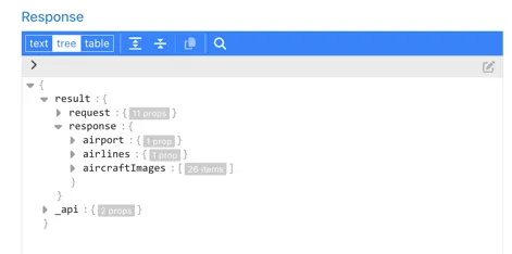 Explore the response to find the data you would like. For the purpose of this example, we are going to use the data in the $.result.response.airport.plugindata section: