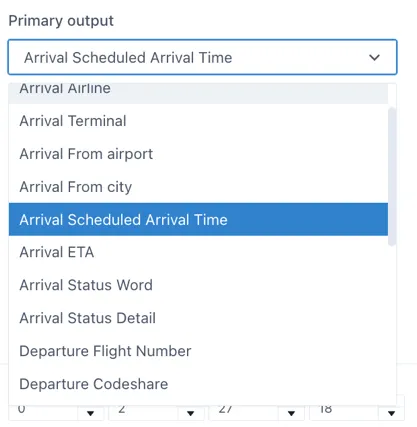 To make it easy for users, all the outputs are prefixed with Arrival or Departure so that they are grouped in the dropdown selection. This makes it easy for users to find the right field.